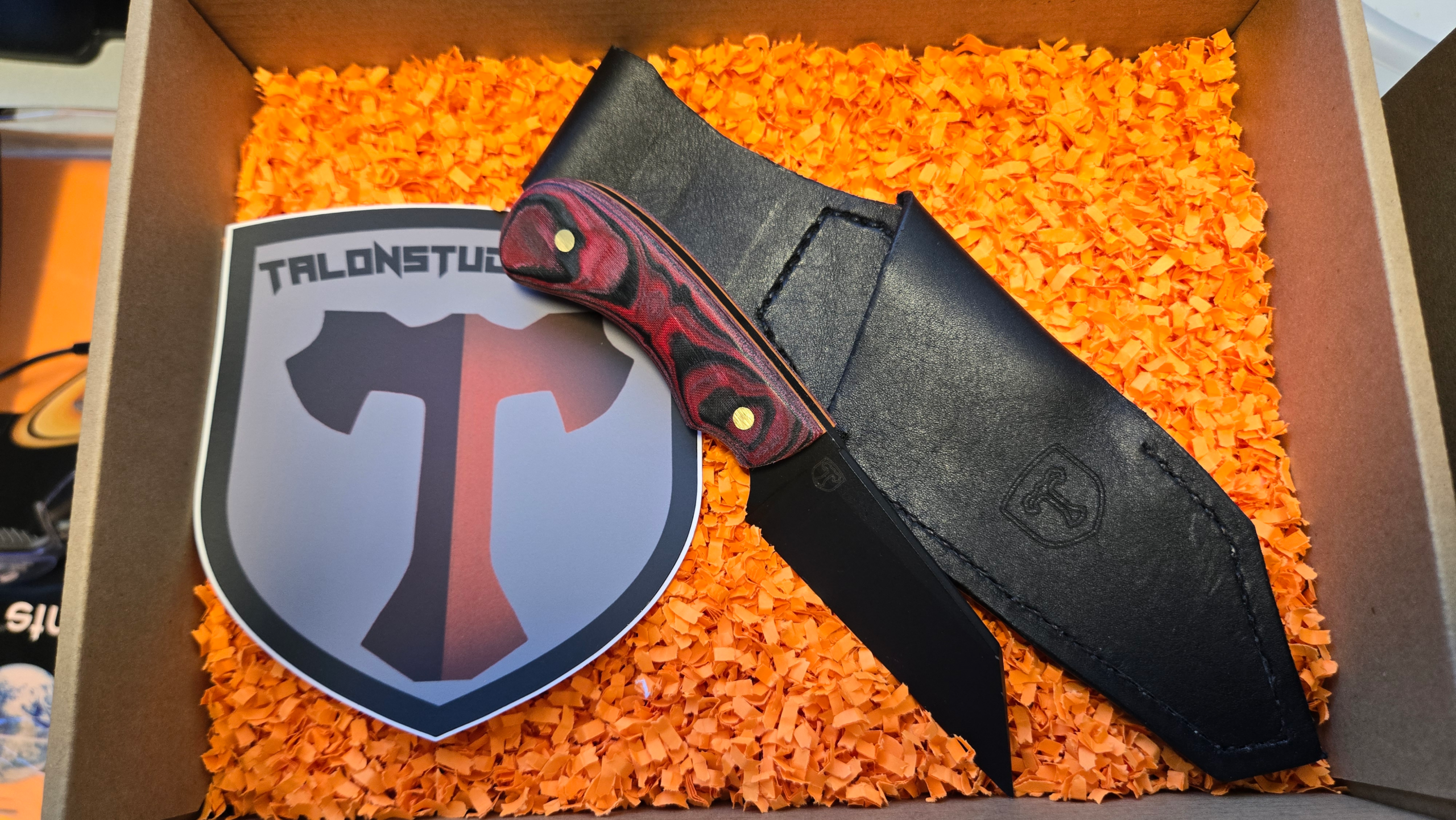 Red and black Micarta with orange liner